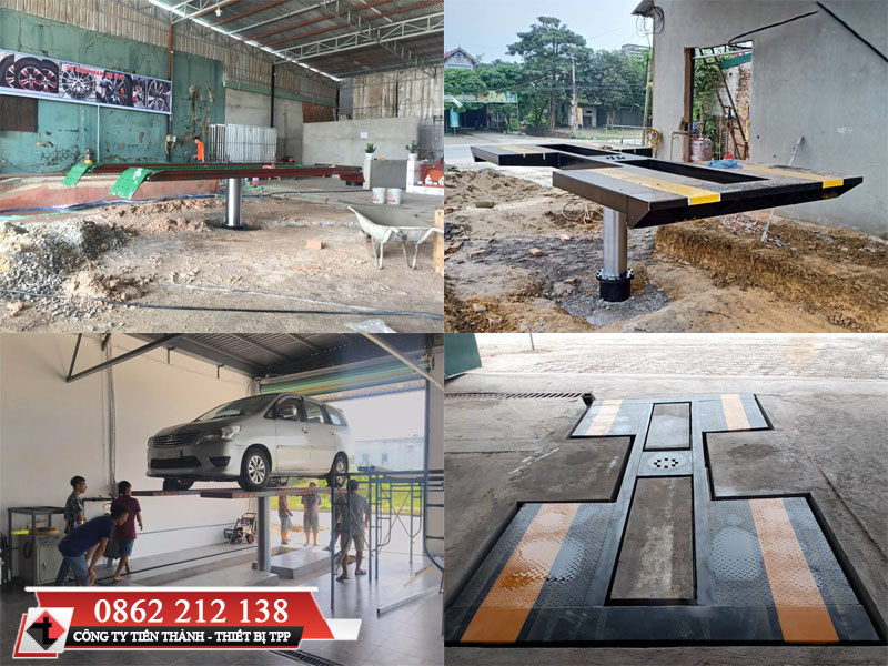 - Cầu nâng trụ rửa xe Ấn Độ âm nền với thiết kế mặt bàn nâng chữ H.